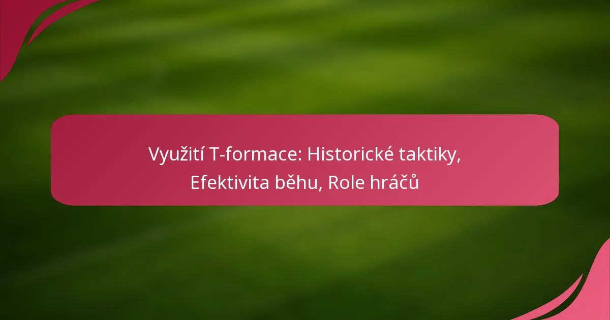 T-formace je strategické fotbalové uspořádání, které zdůrazňuje specifické role hráčů pro maximalizaci efektivity týmu. Každá pozice má odlišné odpovědnosti, které přispívají jak k útočným, tak k obranným hrám, což činí pochopení těchto rolí zásadním pro úspěšnou implementaci.